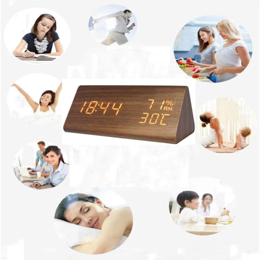 Unendo estetica naturale e tecnologia, questo orologio mostra l'ora con eleganza grazie ai suoi LED discreti. Il suo comando vocale pratico e la luminosità regolabile lo rendono un accessorio moderno, ideale per valorizzare il tuo interno.